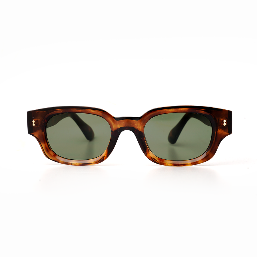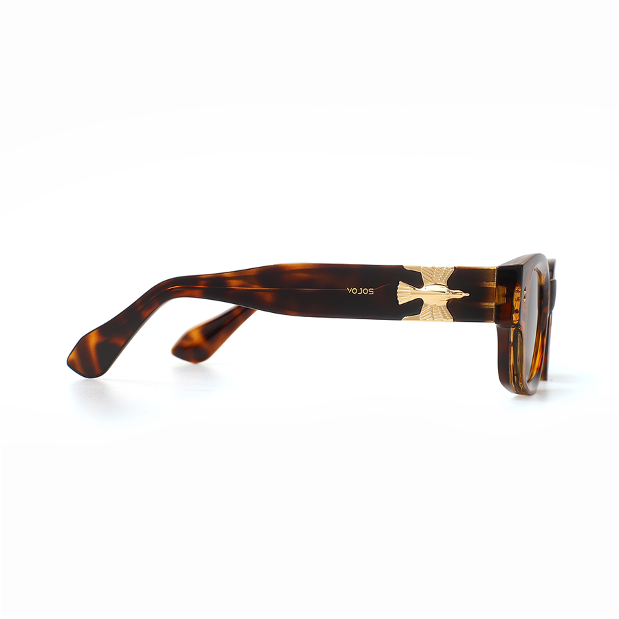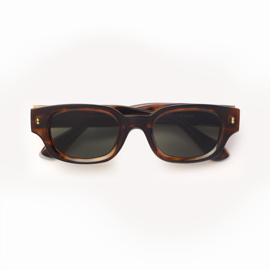 The temple features a golden eagle (Garuda) — a divine bird from Hindu mythology, known as the mount (vahana) of Lord Vishnu. Garuda represents fearlessness, protection, and the power to soar above obstacles. The matte black acetate body contrasts with the golden Garuda emblem, making it both bold and timeless. The front silhouette (slightly rectangular with rounded edges) adds modernity, while the temple detailing roots it in heritage