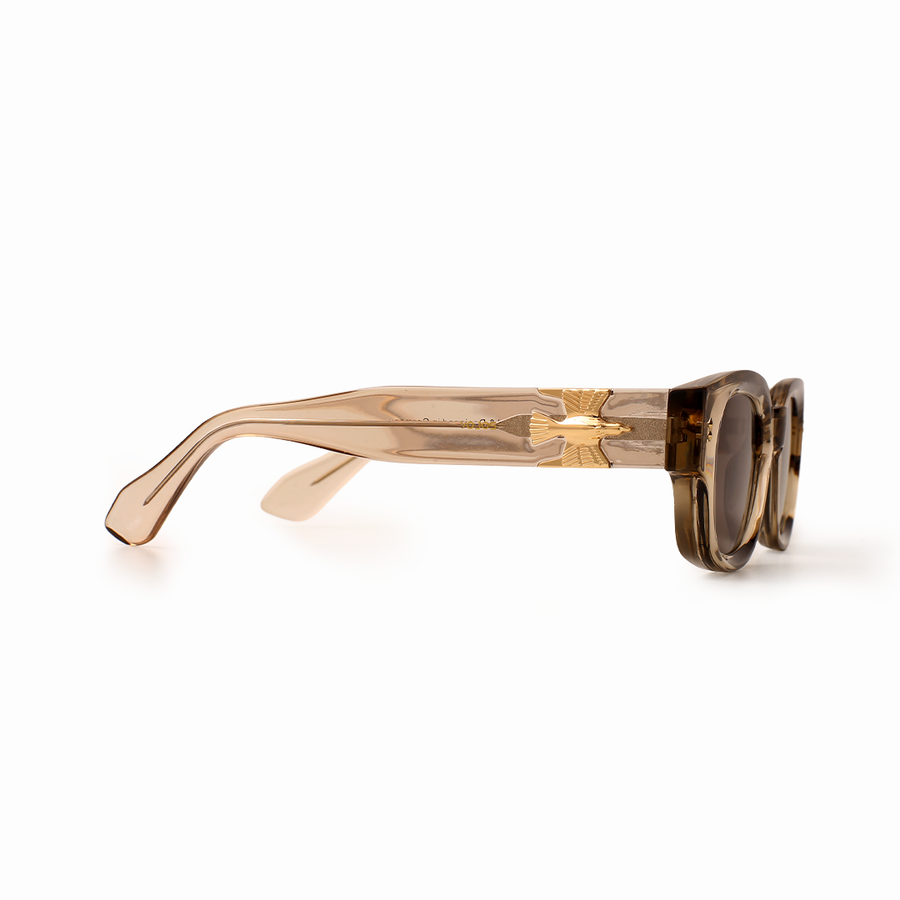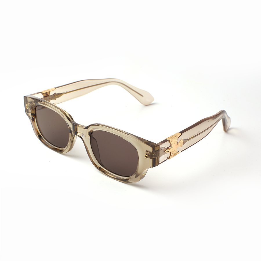 The temple features a golden eagle (Garuda) — a divine bird from Hindu mythology, known as the mount (vahana) of Lord Vishnu. Garuda represents fearlessness, protection, and the power to soar above obstacles. The matte black acetate body contrasts with the golden Garuda emblem, making it both bold and timeless. The front silhouette (slightly rectangular with rounded edges) adds modernity, while the temple detailing roots it in heritage