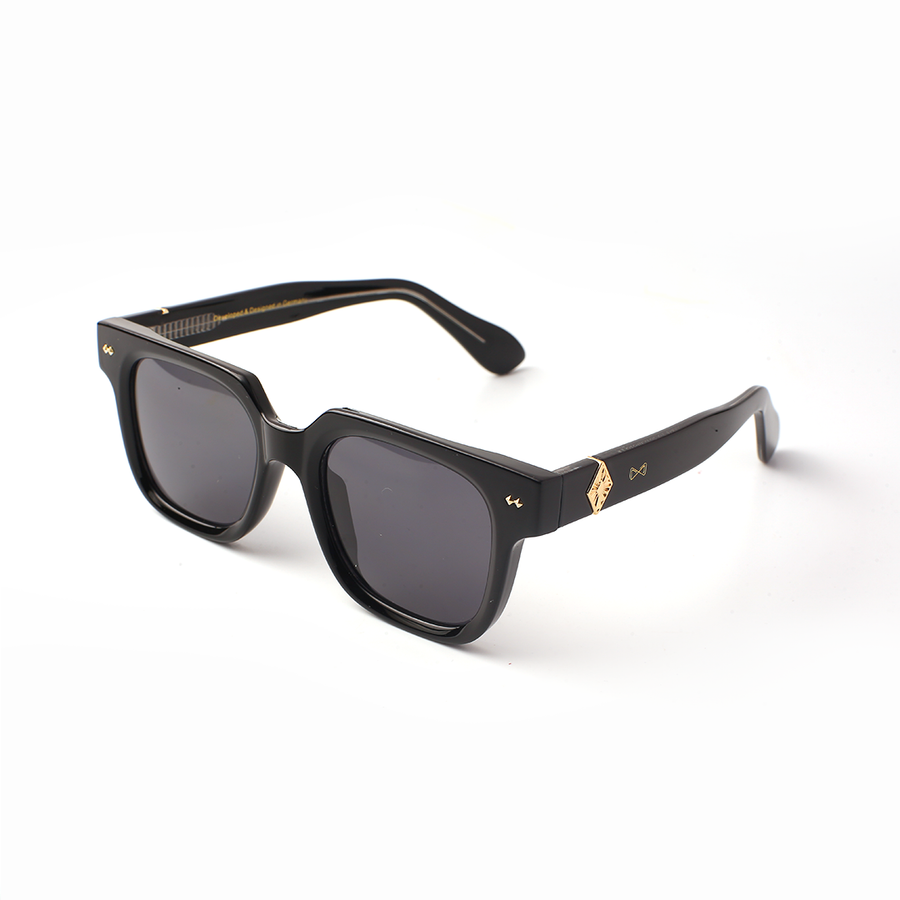 The golden diamond symbol on the temple is inspired by the Mandala — sacred geometric patterns found in Indian temples, rangolis, and ancient art .Mandalas symbolize cosmic order, balance, and the connection between inner self and the universe. The frame combines modern transparent hues (blue + smoky tones) with this sacred motif, merging spirituality with contemporary style.