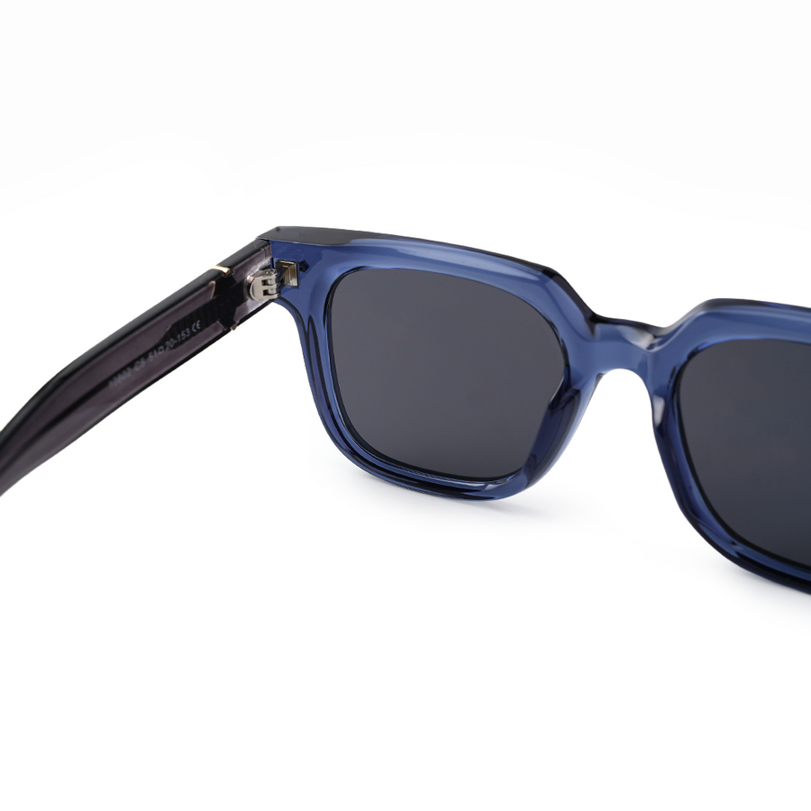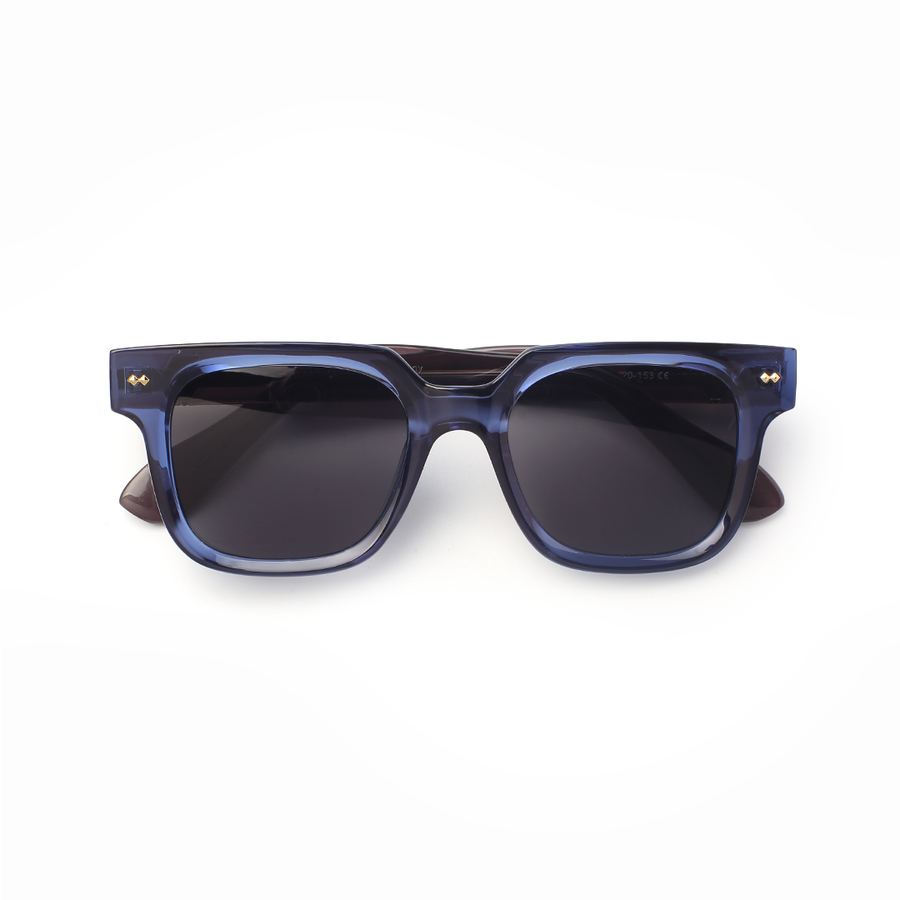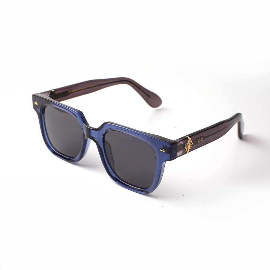 The golden diamond symbol on the temple is inspired by the Mandala — sacred geometric patterns found in Indian temples, rangolis, and ancient art .Mandalas symbolize cosmic order, balance, and the connection between inner self and the universe. The frame combines modern transparent hues (blue + smoky tones) with this sacred motif, merging spirituality with contemporary style.