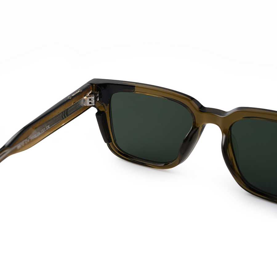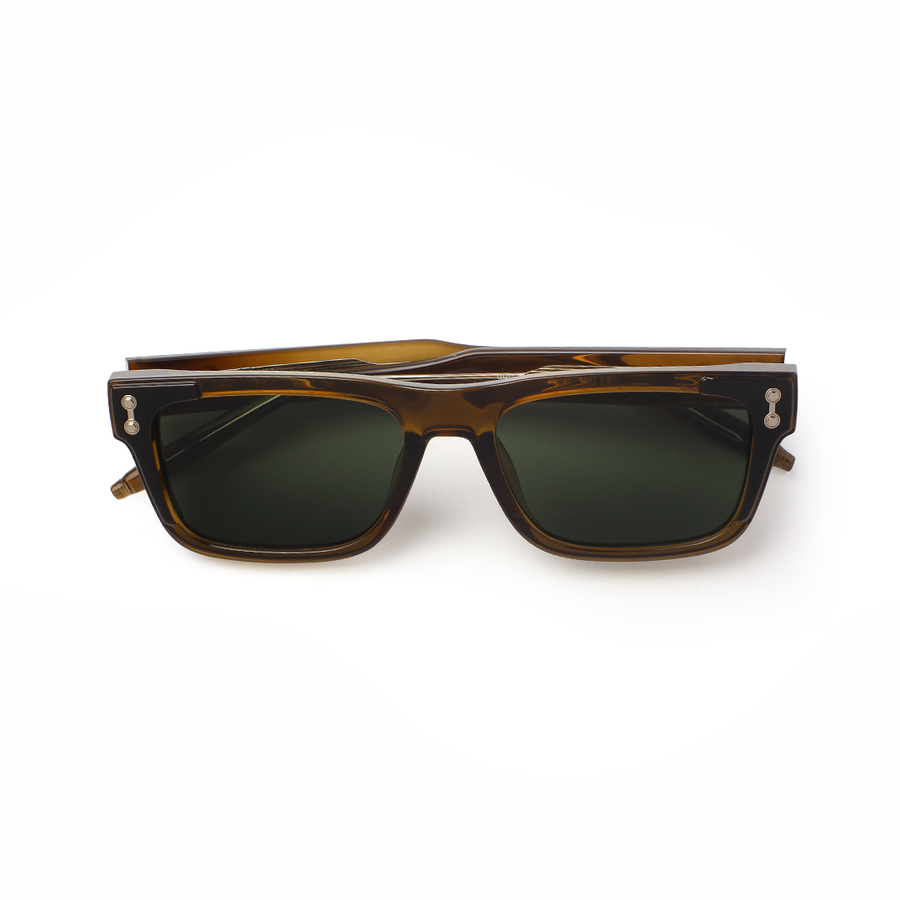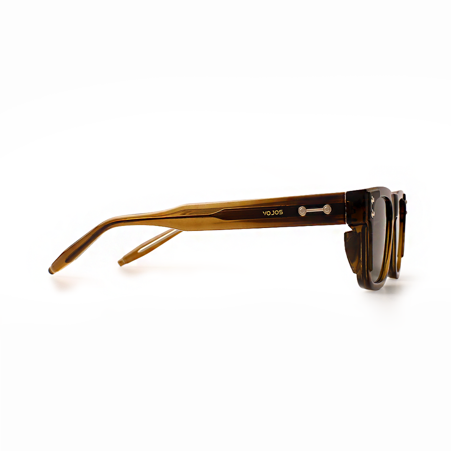 The VOJOS Boardie C3 blends heritage style with bold, modern tones. Designed from high-grade PC (Polycarbonate) for durability and comfort, this rectangular frame features a rich amber-honey front with deep tortoiseshell edges, creating a striking contrast. The green CP UV400 polarised lenses deliver crisp, glare-free vision while ensuring complete UV protection. With its warm, earthy palette and confident structure, Boardie C3 is perfect for those who want to stand out without shouting.