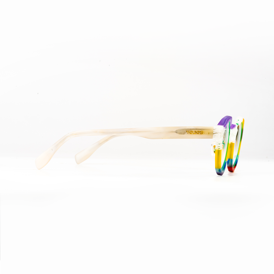 "Console", a stylish pair of sunglasses that captures a unique blend of retro charm and contemporary design. The distinctive frame, crafted from durable acetate material, showcases a bold silhouette with eye-catching details. The frames and temples feature modern color palettes. These sunglasses are perfect for those who want to make a statement while enjoying superior comfort and clarity. The lenses are changeable to optical.