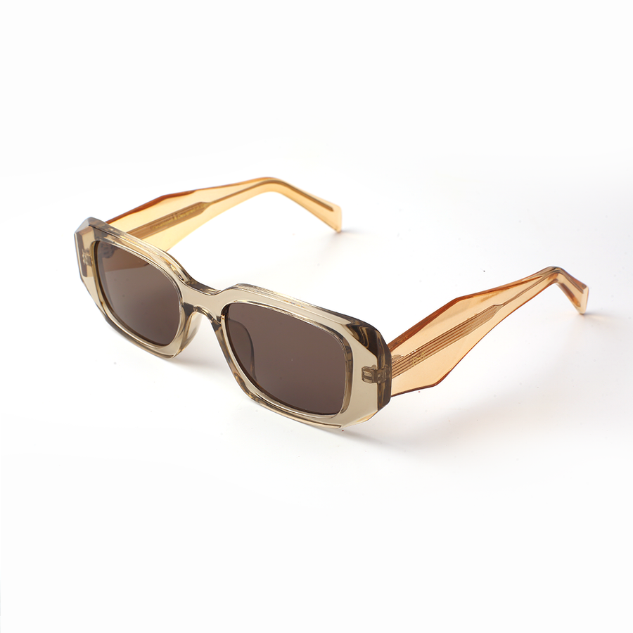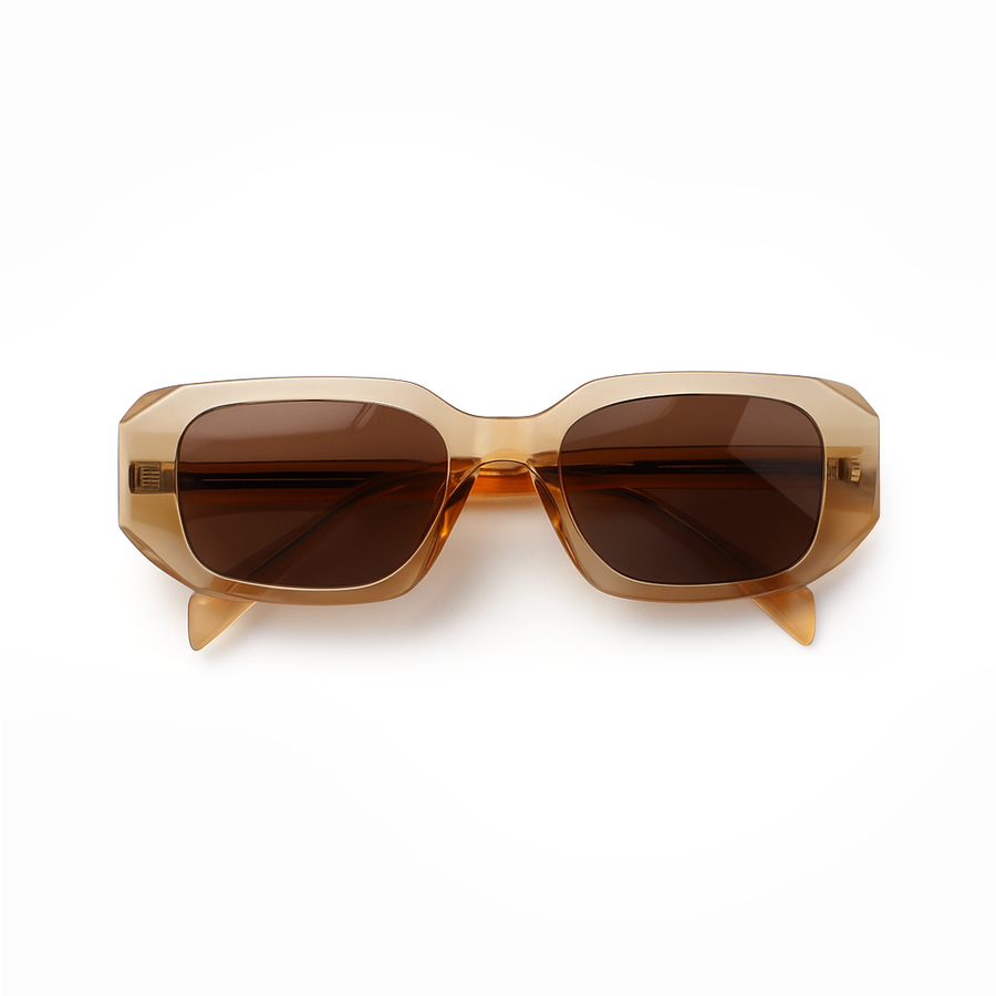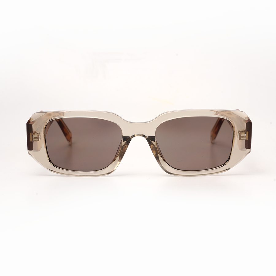 Distinctive from every angle, the VOJOS Crestal C2 combines the bold, rectangular front of our signature designs with uniquely sculpted temples for a fresh, modern profile. Crafted from lightweight yet durable PC (Polycarbonate), the translucent champagne-beige frame radiates subtle elegance, while the warm brown CP UV400 polarised lenses offer glare-free clarity, enhanced contrast, and complete UV protection. Crestal C2 is for those who appreciate refined eyewear with an unexpected design twist.