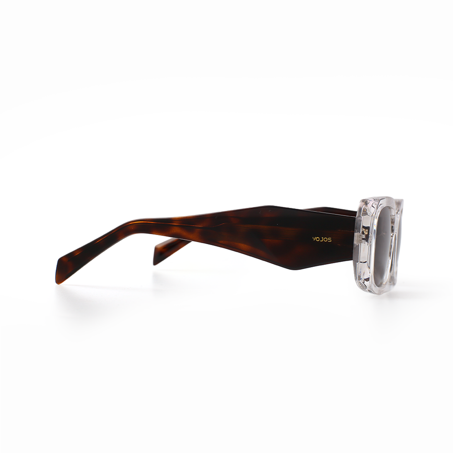 Fresh, clean, and effortlessly modern — the VOJOS Crestal C4 is where bold geometry meets minimalist elegance. Featuring the signature rectangular front of the Crestal series paired with distinctive sculpted temples, this frame is crafted from lightweight, impact-resistant PC (Polycarbonate) for comfort that lasts all day. The crystal-clear frame creates a striking contemporary look, while the warm brown CP UV400 polarised lenses provide glare-free clarity, improved contrast, and full UV protection. Crestal C4 is perfect for those who appreciate modern eyewear with a statement-making edge