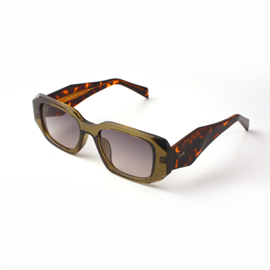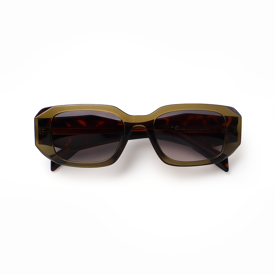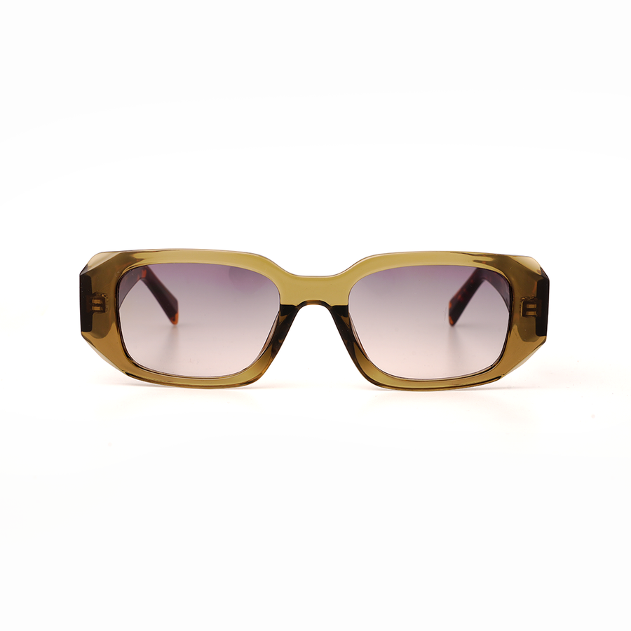 Bold colour meets refined structure in the VOJOS Crestal C5. Retaining the strong rectangular front of the Crestal series with its distinctive sculpted temples, this frame is crafted from lightweight, impact-resistant PC (Polycarbonate) for comfort and durability. The translucent olive-brown finish offers a rich, earthy tone, while the gradient brown-to-purple CP UV400 polarised lenses provide glare-free clarity, a smooth colour transition, and complete UV protection. Crestal C5 is for those who want their eyewear to balance natural warmth with a modern edge.