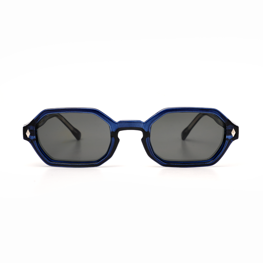 The GEO Midnight Blue Edition takes bold geometry to the next level with its octagonal silhouette and deep midnight blue acetate frame. Balanced with smoke grey lenses, this eyewear fuses futuristic design with urban minimalism — making it a striking statement piece for those who lead, not follow.