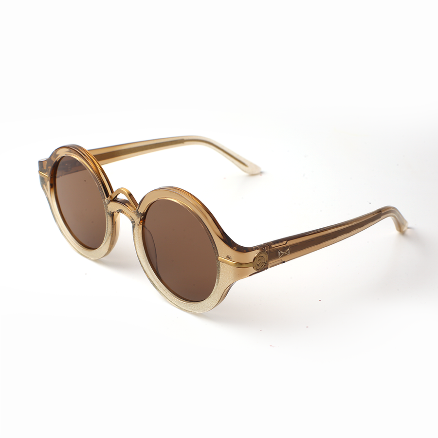 Contrasting Temples:Deep navy temples with a subtle gradient effect add contrast and sophistication, while gold detailing at the hinge adds a touch of luxe.