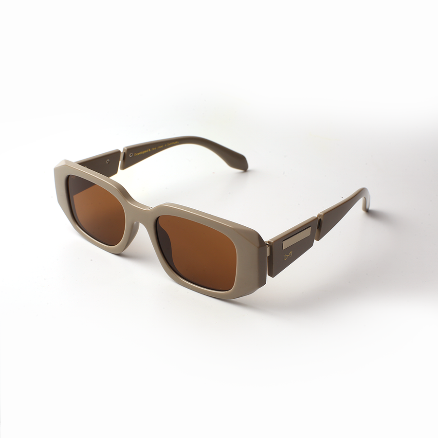 Redefine understated elegance with the VOJOS Shadowcut C3, a perfect blend of contemporary minimalism and bold character. Expertly crafted from durable, lightweight PC (Polycarbonate), the frame showcases a confident rectangular silhouette with distinct angular cuts, adding a sculptural edge to its clean lines. The smooth matte taupe finish offers a refined, modern aesthetic that pairs effortlessly with any outfit, while the warm amber CP UV400 polarised lenses ensure glare-free clarity, vibrant contrast, and complete sun protection. Designed for those who value subtle sophistication with a statement twist, Shadowcut C3 is the ideal companion for city strolls, beach days, or weekend getaways.