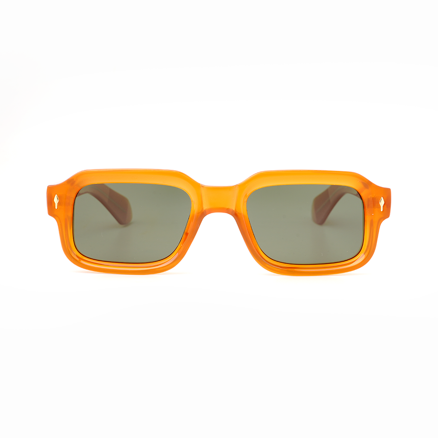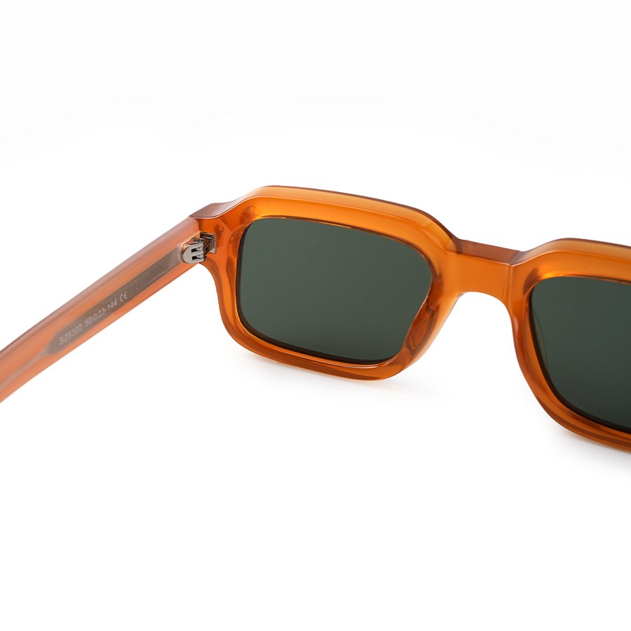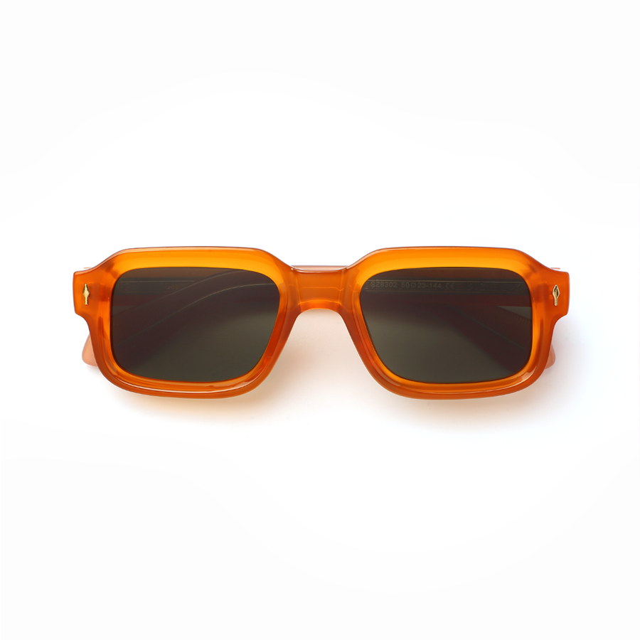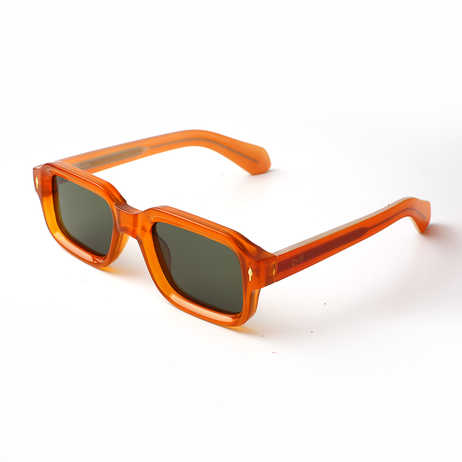 The VOJOS Solflare Edition is a bold statement of energy and individuality. With its bright translucent orange acetate frame and green-tinted UV400 lenses, it’s designed for those who like to stand out. The geometric square profile with subtle rounded edges makes it a modern classic with a vibrant twist.