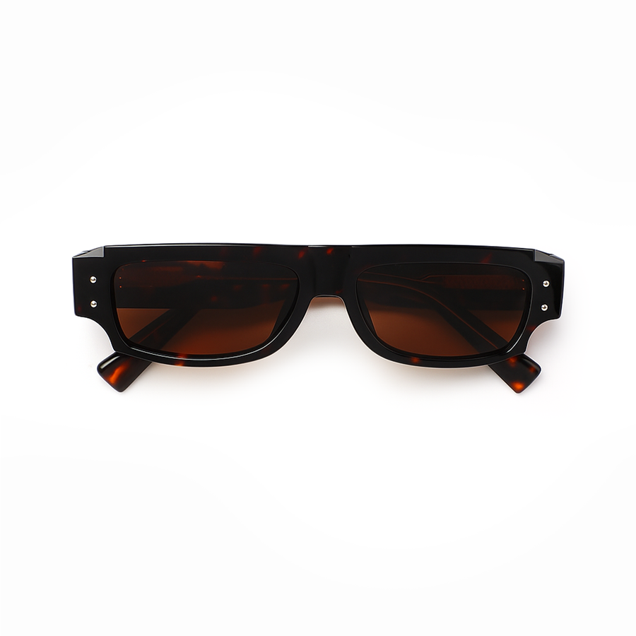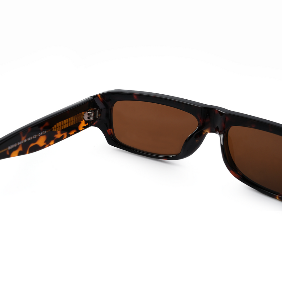 Edgy and urban — the TORREN Tortoise Amber Edition is crafted for bold personalities. Featuring a slim rectangular silhouette with a deep tortoise PC frame, it combines retro streetwear style with modern durability. The amber polarised lenses enhance contrast, block glare, and provide complete UV protection, while metal rivet detailing adds an extra layer of attitude.