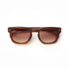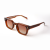 The Auburn Fade Ember Edition radiates timeless elegance with a modern twist. Featuring a warm amber-toned translucent frame paired with gradient brown lenses, this design captures the sophistication of vintage eyewear with contemporary refinement. The structured square silhouette highlights confidence, while the engraved VOJOS eagle on the temples symbolizes strength and vision.
